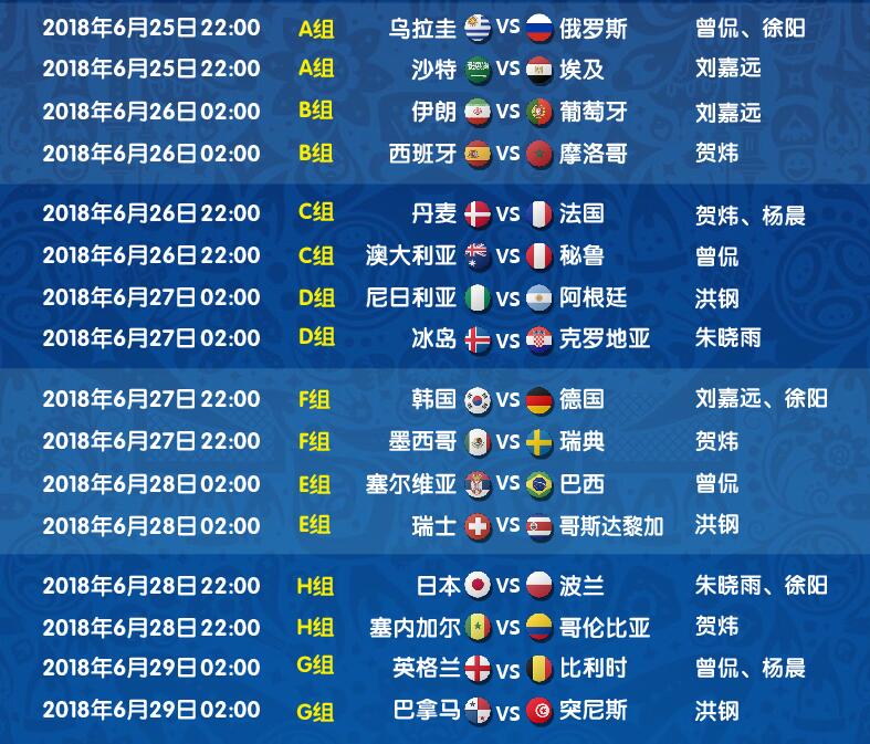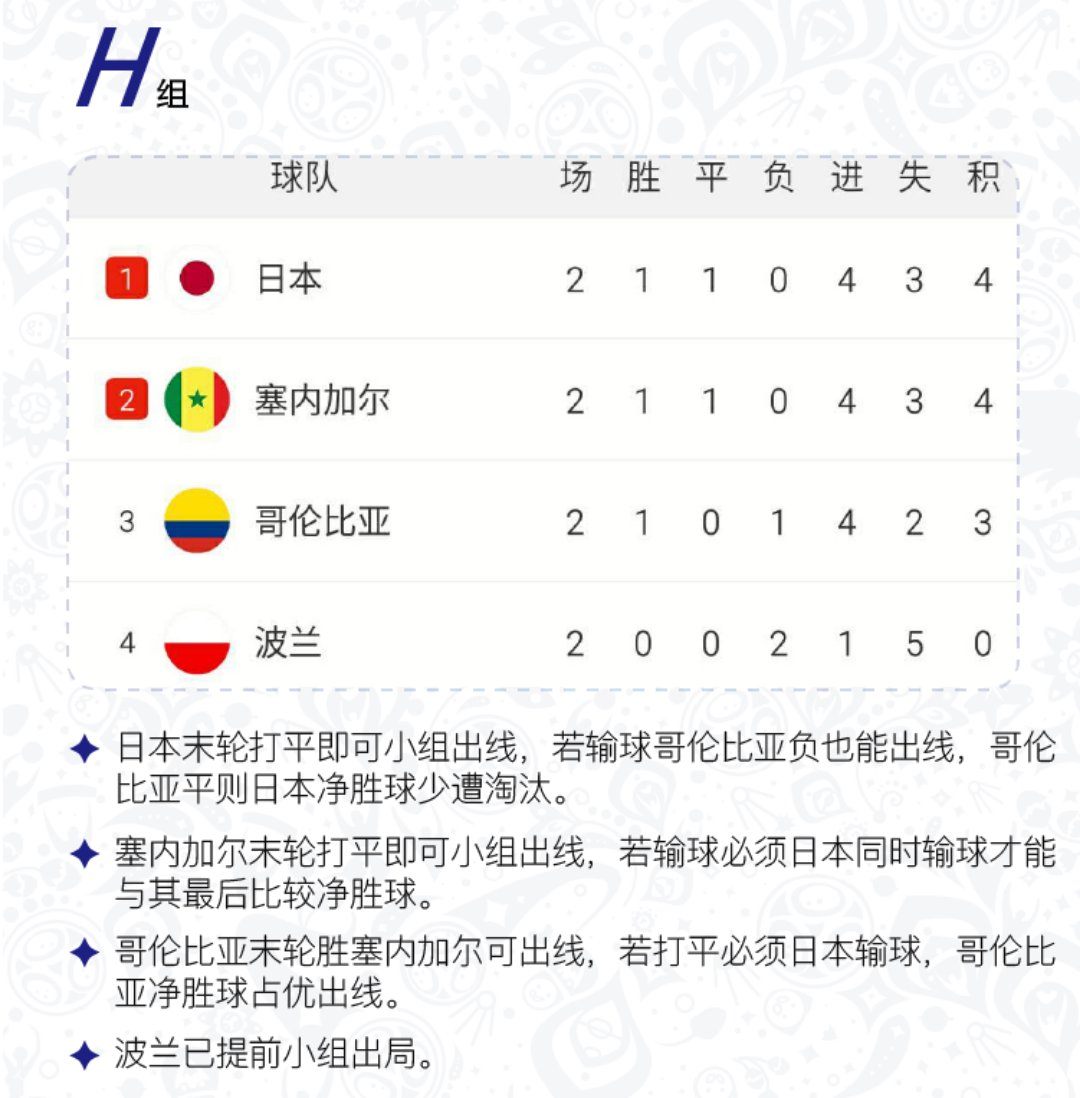 日本队前两战1胜1平发挥出色,面对提前出局的波兰,他们打平即可出线,这场比赛将由朱晓雨和徐阳搭档解说。另一场塞内加尔和哥伦比亚争夺出线权的生死战,则由贺炜单口解说。