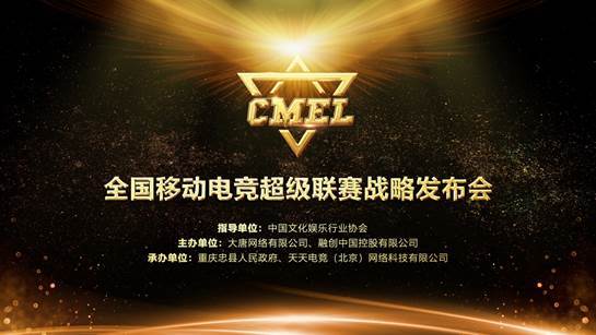 6月28日,主题为“竞·赢”的全国移动电竞超级联赛(CMEL)战略发布会在北京国际会议中心成功举办。CMEL由中国文化娱乐行业协会指导,大唐网络与融创中国联合主办,重庆忠县人民政府、天天电竞联合承办。CMEL全国移动电竞超级联赛的成功发布标志着中国移动电竞行业进入职业化、体育化发展新阶段。