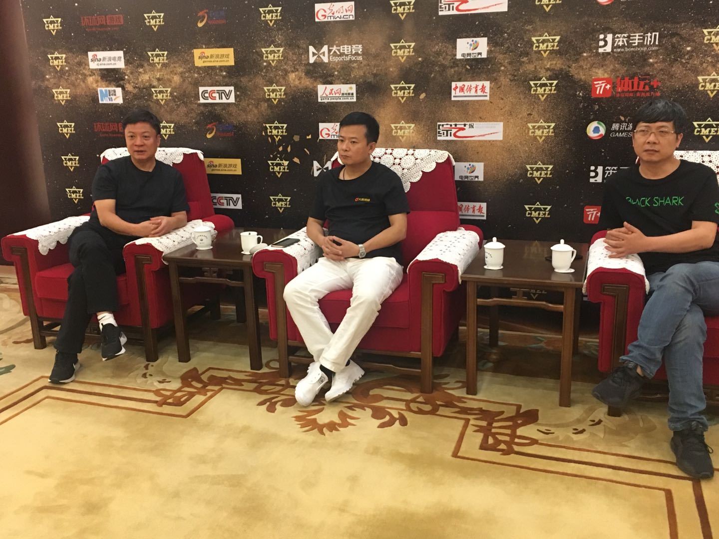 发布会后,大唐网络总裁、天天电竞董事长杨勇、融创中国控股有限公司董事会主席孙宏斌、黑鲨科技CEO吴世敏共同接受了媒体采访,三方就共同推动CMEL产业化发展以及电竞小镇建设等问题进行了精彩回答。