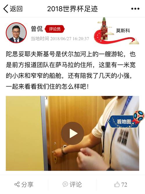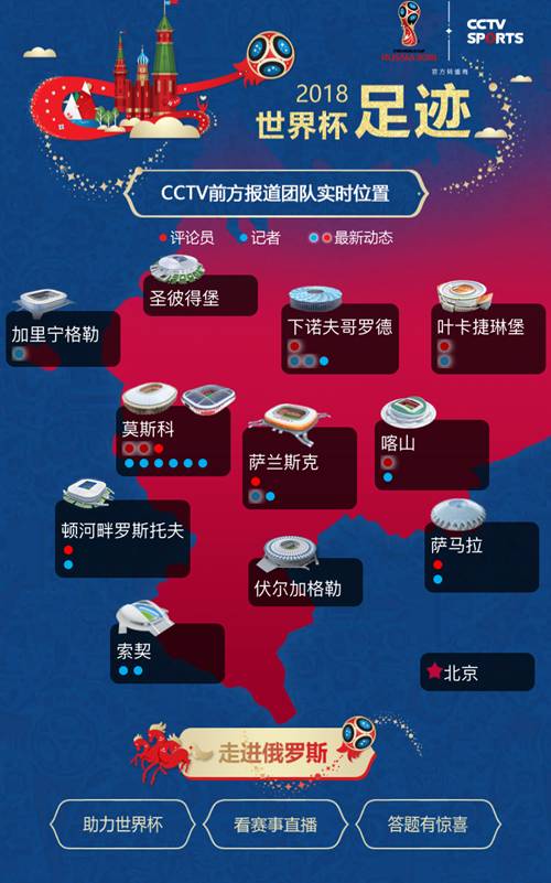 精彩花絮,独家报道,这里不仅有来自中央电视台报道团队的世界杯现场体验,还有评论员和记者们在前方工作与幕后生活的点滴瞬间。