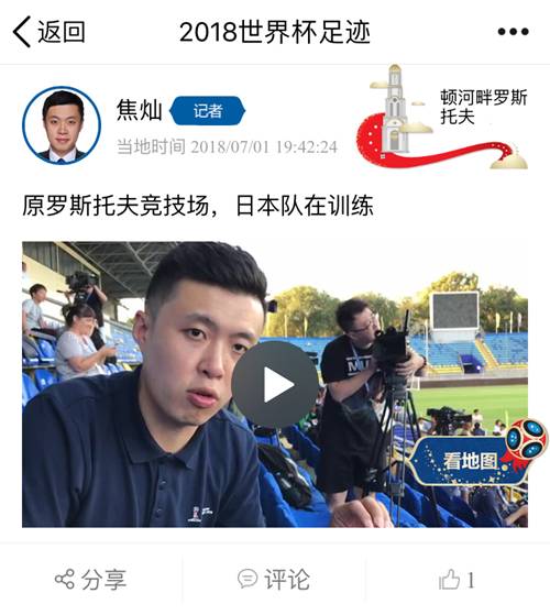 央视记者焦灿:“原罗斯托夫竞技场,日本队在训练”