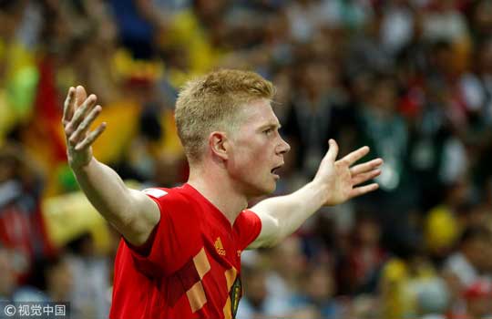第31分钟,比利时扩大领先优势,卢卡库分球,德布劳内禁区右侧边缘劲射球门左侧入网,2-0!德布劳内收获本届世界杯第一球,也是他职业生涯第2个世界杯进球,国家队生涯第15球。()