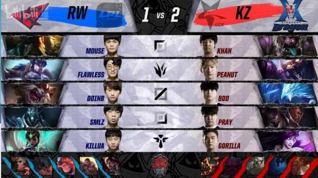 双方BP情况:RW背水一战选择克烈中单,SMLZ祭出死歌。KZ则选择冰鸟限制死歌进场。
