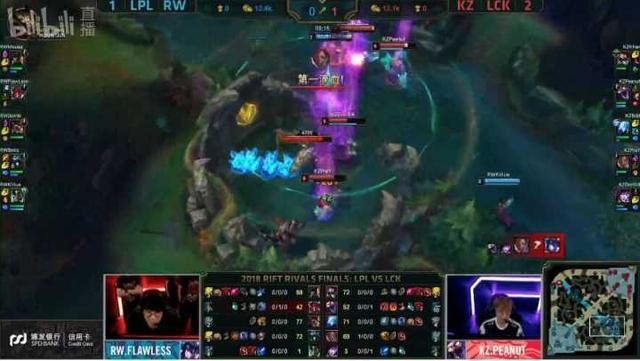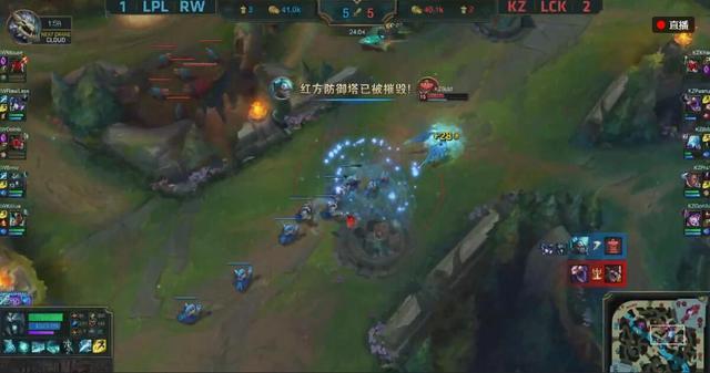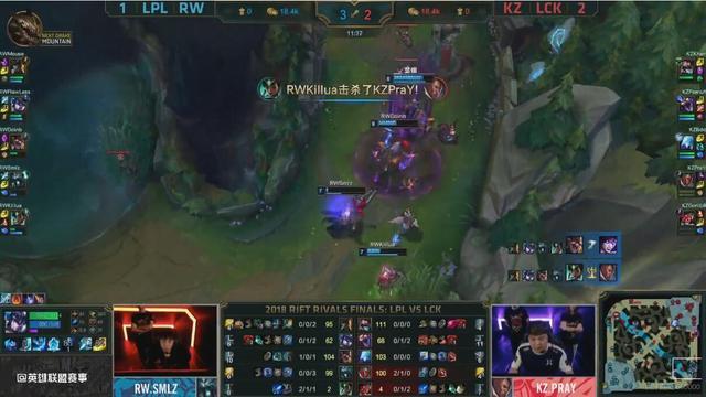 11分钟,Doinb克烈率先发难,大招塔下强开KZ下路。RW四包二击杀KZ双人。而KZ也随后在中路击杀掉克烈。双方打得有来有回。