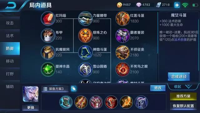 铠皇并不需要那么多的输出装,所以这两三件装备就够了,补一件反伤刺甲和魔女斗篷让他更站得住脚,战士来死,坦克来头给打爆!