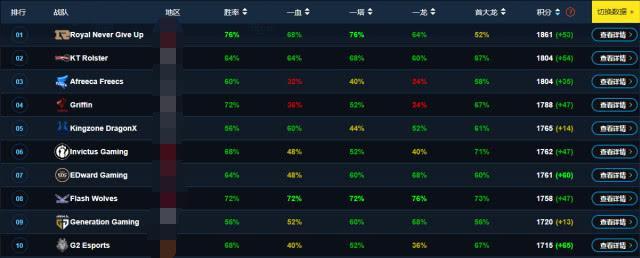 可以看到目前RNG以1861的总评分排到了第一名,而KZ则以1804的评分排在第二,有趣的是GRF虽然没有参与洲际赛,但是鉴于之前在LCK赛区的出色表现, 目前以1788评分位列第三名,此前一度被誉为LCK最强战斗力的KZ则跌落至第五名。另外在前10名中,iG和EDG也是有入榜,不过对于这次表现很好的RW没有进榜单,还是有点意外的。