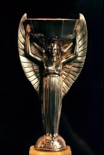 世界杯赛从1930年至今有过两座奖杯,“雷米特杯”和“大力神杯”。从1930年第一届到1970年第9届,使用的奖杯都是雷米特杯,1930年第一届世界杯举行前,法国雕塑家亚伯·拉弗勒尔设计了雷米特杯的造型,这是一座以八边形大理石底座托起的奖杯,主体是希腊胜利女神尼凯的形象,尼凯身着长裙,展开她特有的翅膀,并用双手托举起一只大杯,象征着胜利和荣誉。奖杯由纯银制成,外面镶金,高35厘米、重约3.8公斤,底座的四面各镶了一块金牌,上面用来铭刻冠军队的名字。