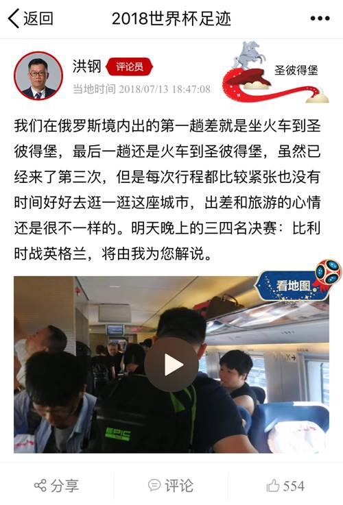 央视评论员洪钢在乘坐火车到圣彼得堡的时候拍摄了一条视频,在俄罗斯的第一次旅程就是乘坐火车,最后一次也一样。