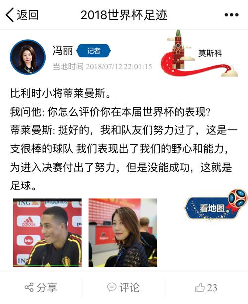央视记者冯丽探营比利时队,采访了“帝星”蒂莱曼斯,并且在比利时的训练营中看到了欢乐多多的球员们。