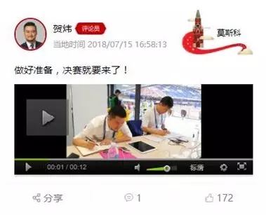 在世界杯足迹平台,我们可以看到多条贺炜与徐阳的赛前互动,哥俩不仅“互殴”,而且还“互怼”,当徐阳提到自己在进球时喜欢喊的“漂亮”时,贺炜调侃,“他过会一定会有漂亮来打断我的吟诗作赋!”