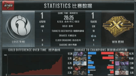 27分钟的时候,Snake在推进IG中路高地的时候,IG这边再次选择先手开团,不过因为前期的劣势,被Snake打出了一波2换5,之后Snake一波结束了比赛,将比分扳平。双方这一局的输出如下,Snake的上单圣枪哥吸血鬼打出了全场最高伤害,IG伤害最高的是上单Duke的凯南: