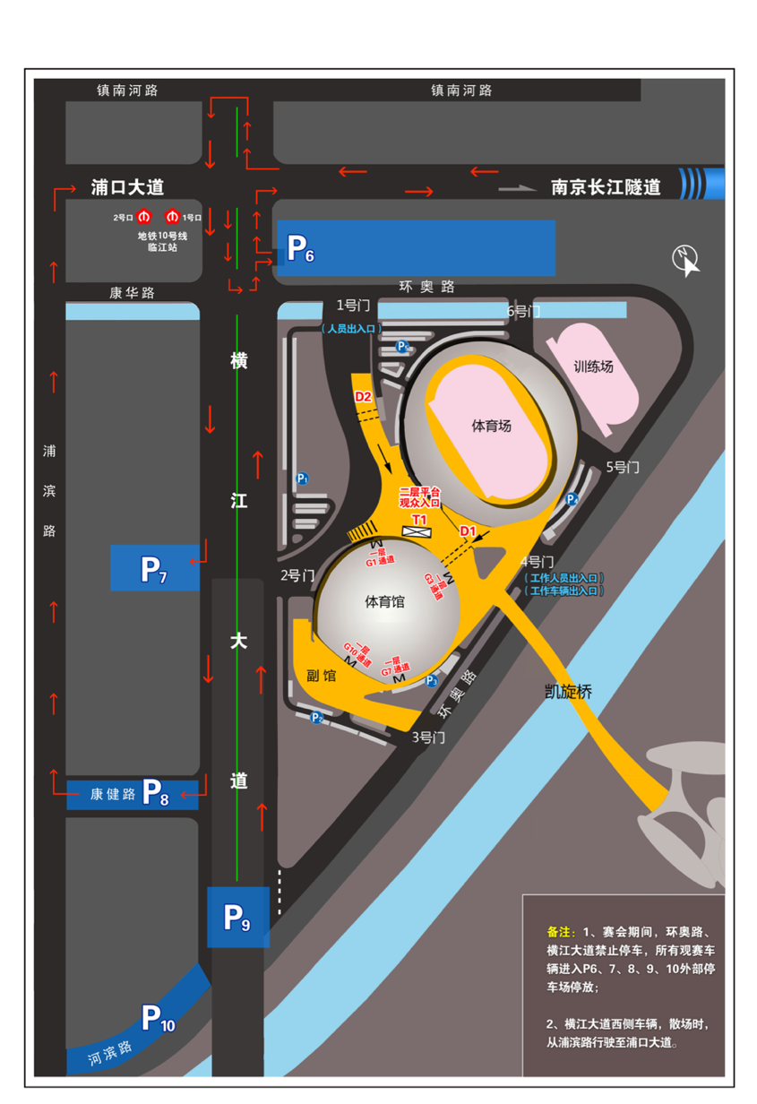 前往现场观赛的球迷如何进入场馆?据世锦赛组委会安全保障部工作人员介绍,羽毛球世锦赛比赛期间,环奥路、横江大道禁止停车,所有观赛车辆要进入P6、7、8、9、10停车场进行停放,青奥体育公园外这5个停车场预计可停车辆约3000余辆。为了有更好的观赛体验,建议广大球迷朋友搭乘地铁等公共交通工具前往观赛。同时,还要提醒的是,持票观众届时可从青奥体育公园1号门进入,沿台阶上二层平台,从二层平台T1通道进入体育馆内,到达看台区,观看比赛。