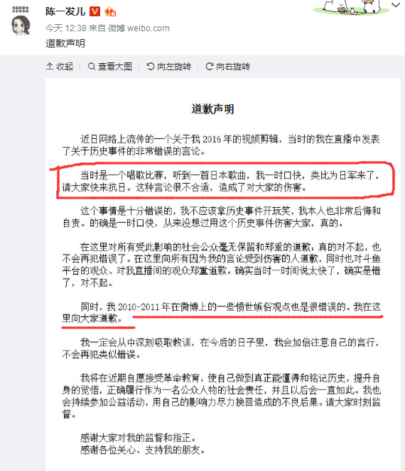 之后陈一发的这则道歉罕见的得到了无数粉丝的原谅: