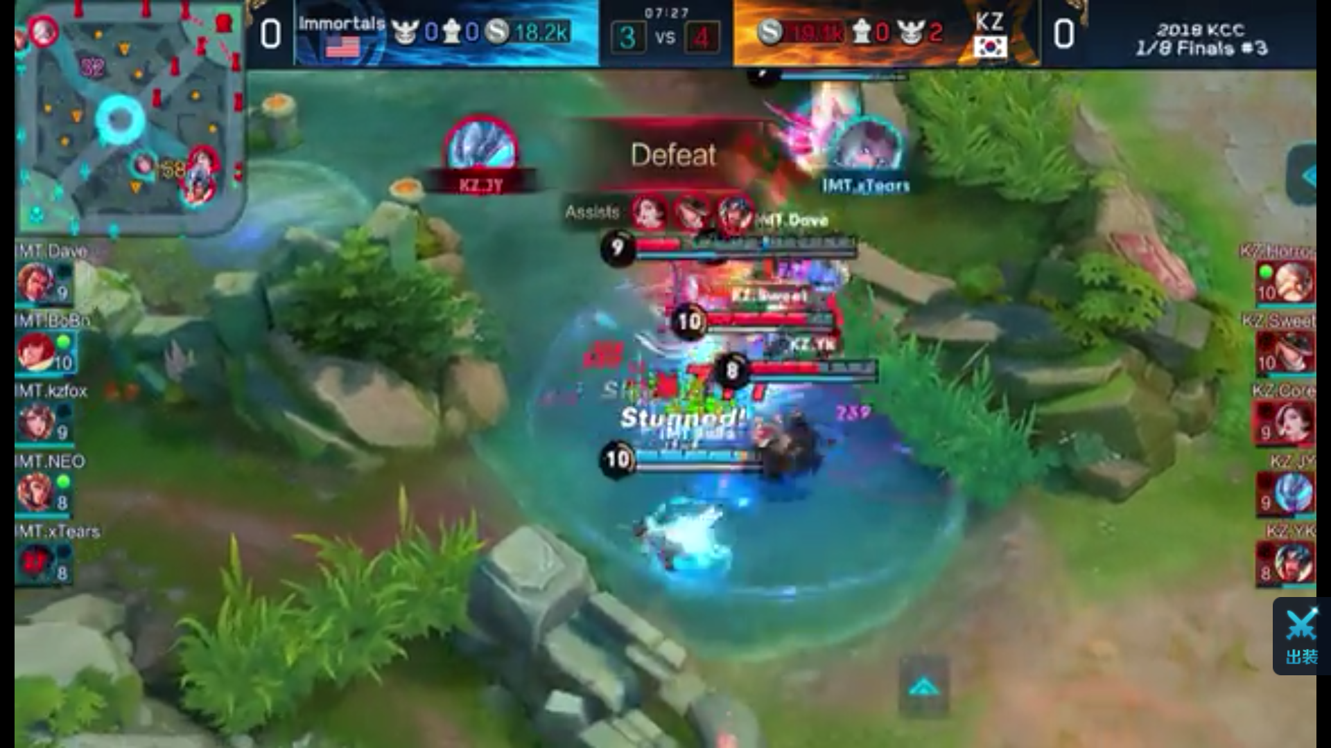 19分17秒双方在上路红区团战,IMT再次不敌,随后被KZ击破水。KZ以4:0晋级!