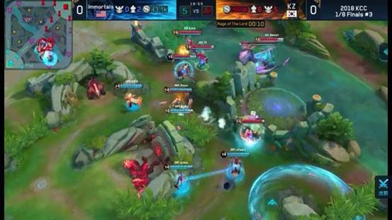 3分30秒,双方6人在下路展开激战,IMT东皇开大帮助队友击杀KZ鬼谷子。4分53秒双方在下路蓝区激烈团战,KZ依靠走位优势打出1换2。