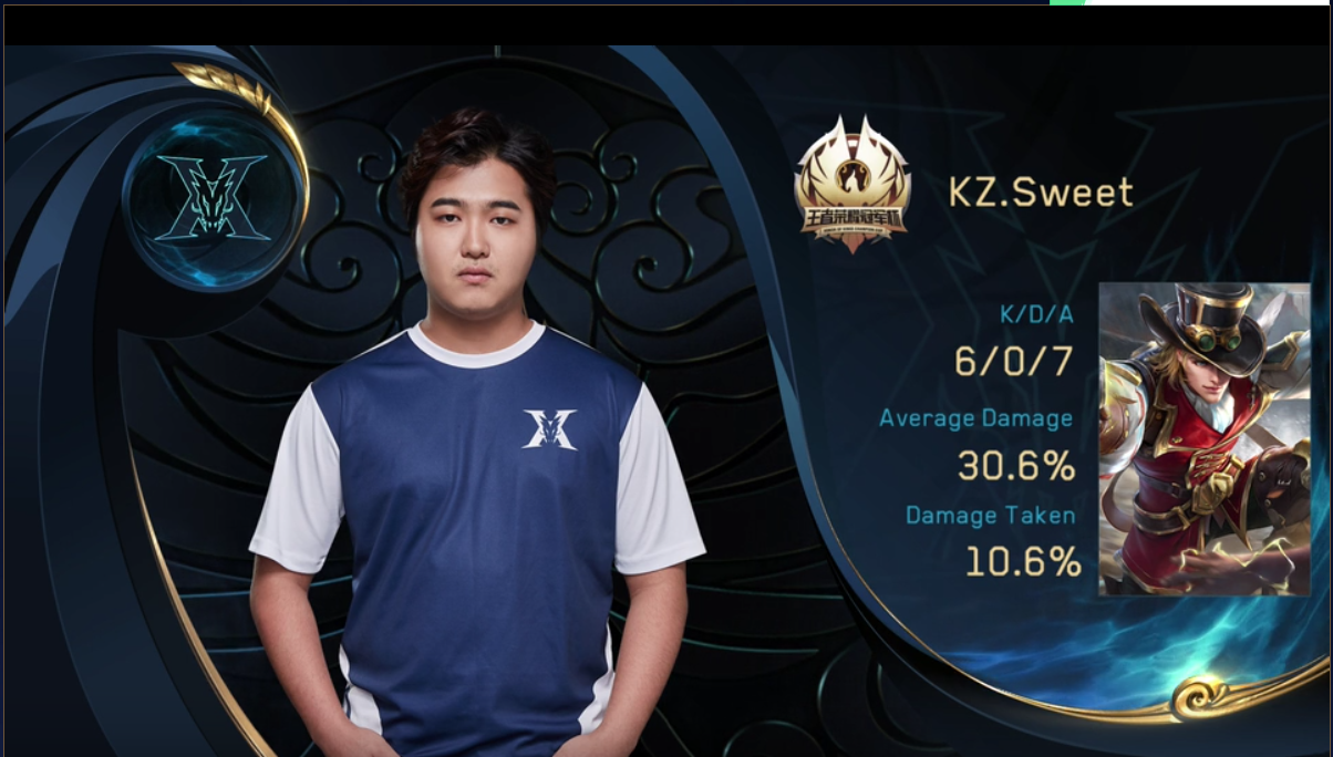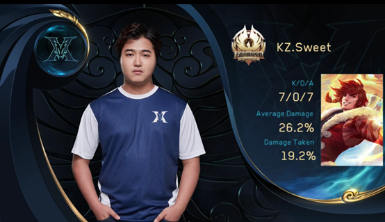 本场MVP再次给到KZ.Sweet的裴擒虎。
