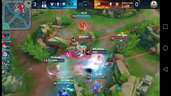 7分30秒,KZ在下路多打少连续击杀IMT两人,随后顺势转中路推掉IMT一塔。8分31秒,IMT东皇埋伏大招含住老夫子,三人将老夫子击杀。9分13秒,KZ偷掉IMT上路一塔,大乔开大又慢了一拍。9分46秒,KZ马可波罗和项羽借助队友的调虎离山偷掉主宰。
