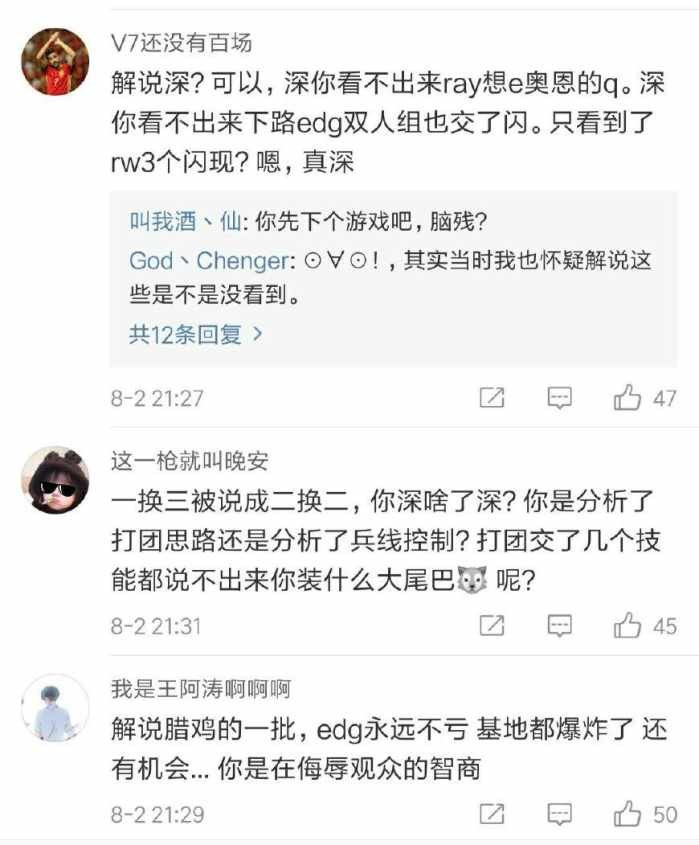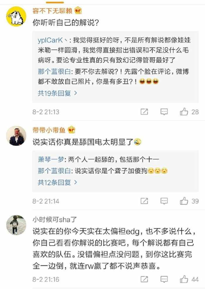 原标题:LPL解说致幻被指偏向EDG 回复:不拿俱乐部钱 有些人听不懂