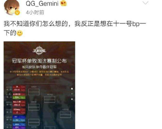 QGhappy的教练一向是非常低调的,但是这一次在赛程出来之后,也在微博上发表了自己要进入决赛的决心,看得出来,QGhappy还是非常重视这次的比赛,肯定为了这一次的比赛,做出了非常多的准备工作。