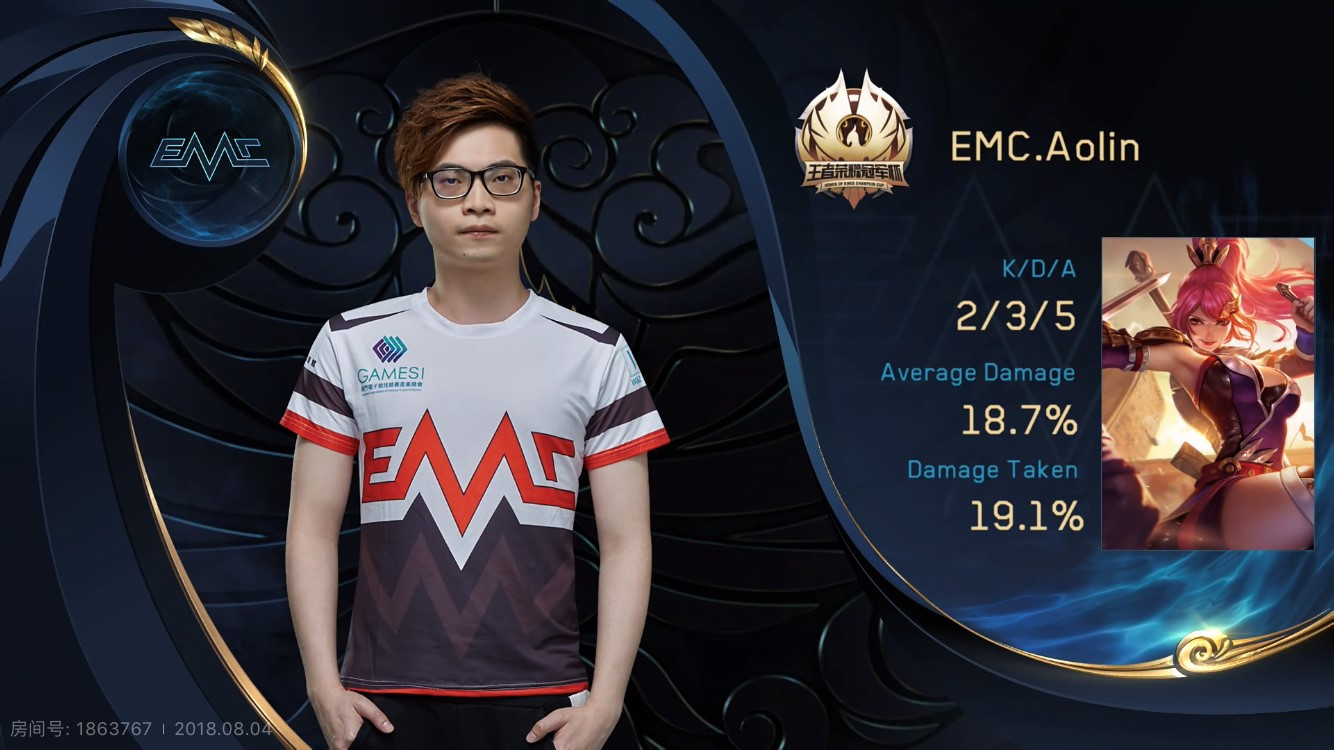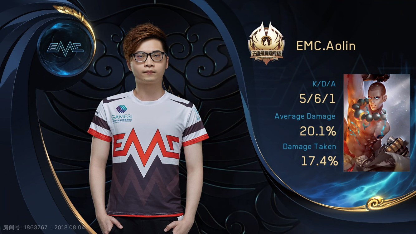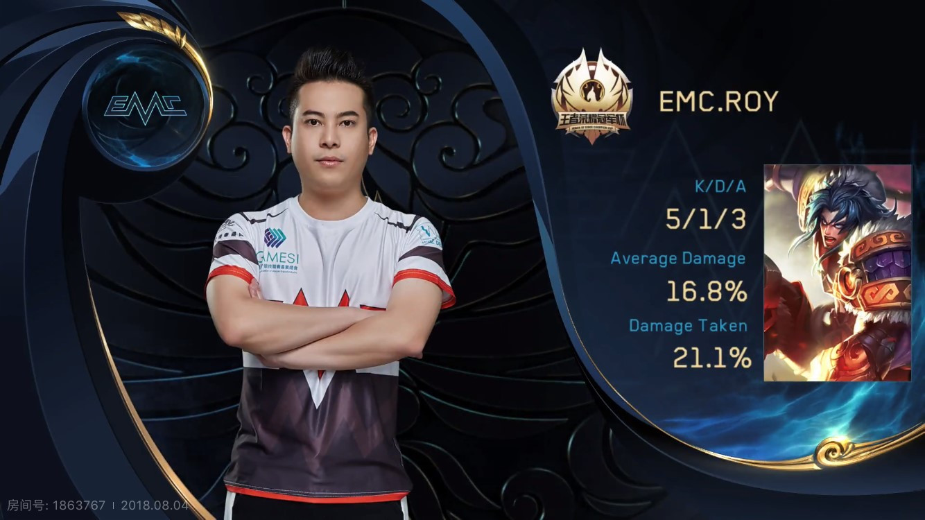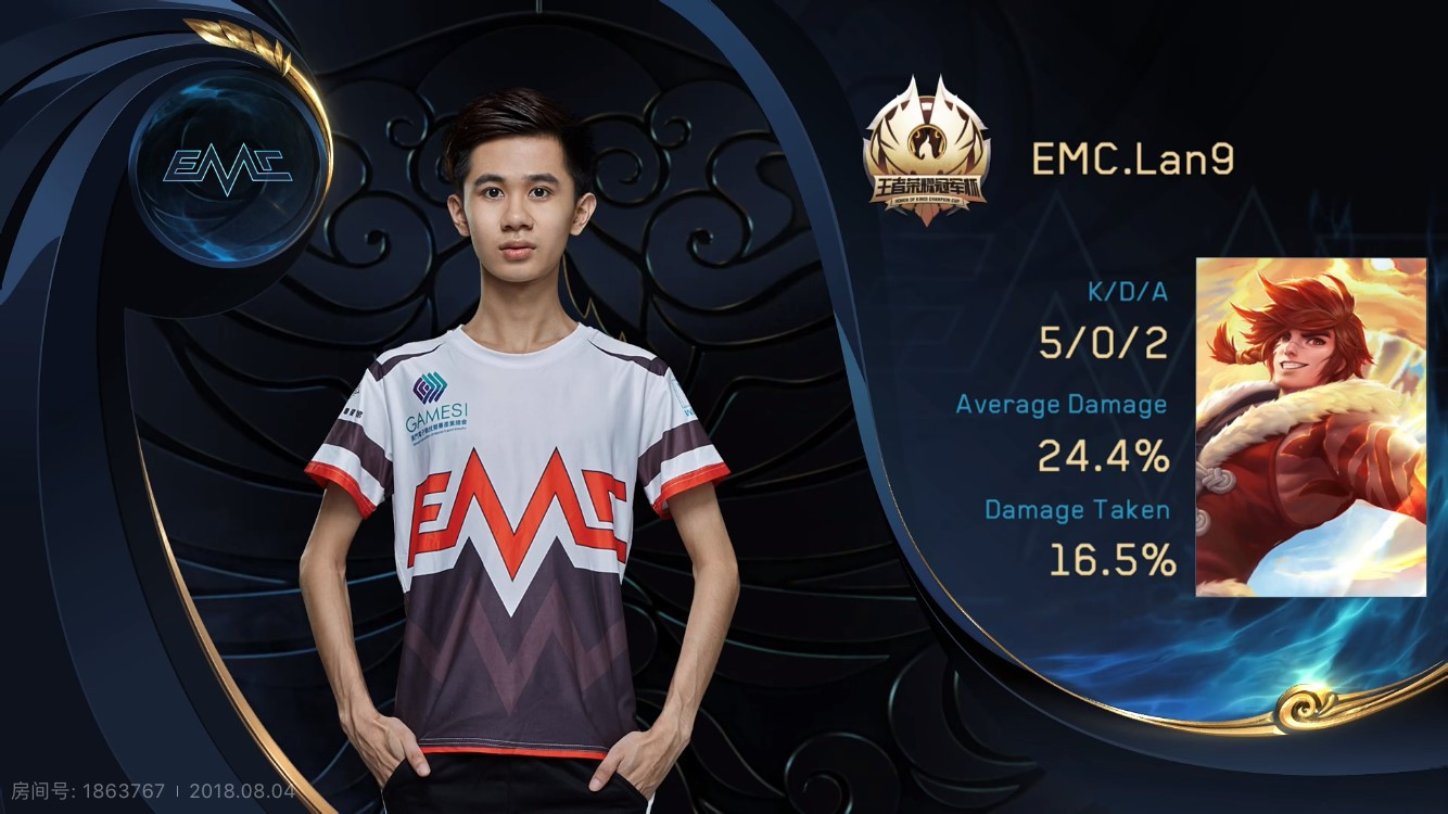 最终,本场的MVP给到了EMC战队的边路项羽!