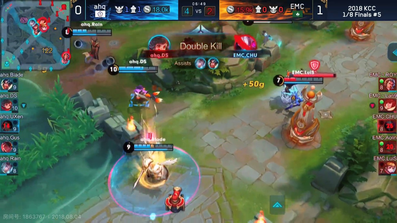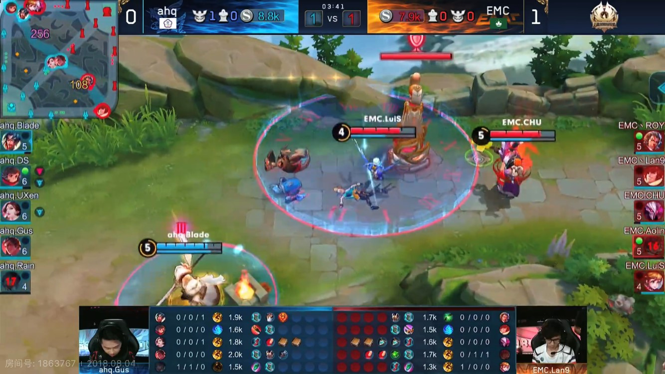 六分钟,EMC战队再次找到机会,直接秒掉迷路的鬼谷子!局势再次倒向EMC战队,AHQ要加油啊!