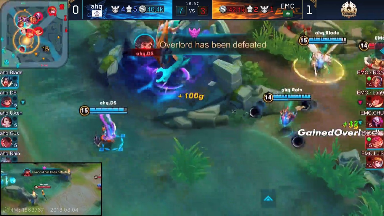 十五分三十秒,AHQ卡时间点,直接主宰处集结,EMC没有反应过来,主宰直接被击杀!