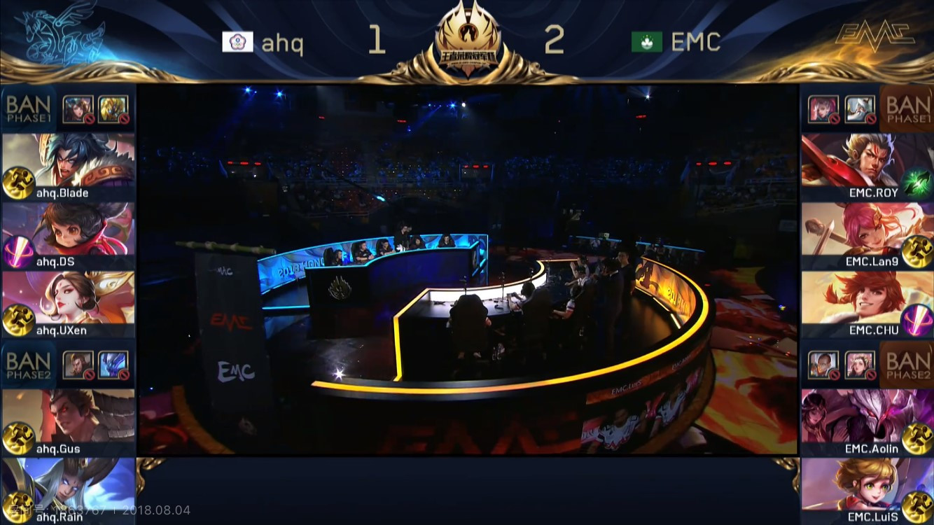 (体育 Predwan/文)北京时间八月四日,王者荣耀重大赛事王者荣耀冠军杯已经进行到第四天,今天的首场比赛是由中国台湾战队AHQ战队对阵中国澳门赛区的EMC战队,AHQ战队是一个大家都很熟悉的战队了,各类的电子竞技都有所涉及,其实力当然也是不容小觑,但是如果因此而小看了EMC战队那就是大错特错了,能够站在这个比赛战场上的又怎么会有弱队?究竟是AHQ拿到属于自己的八强赛资格还是EMC能够终结比赛进入八强的战斗中呢?我们拭目以待!