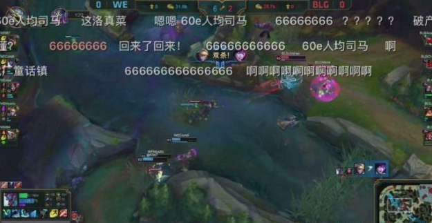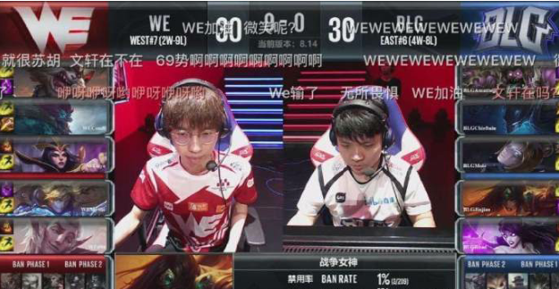 30分钟WE利用大龙逼团,兮夜再次建立大功,人群里打残梦魇,WE拿到大龙开始逼近高地,靠着兮夜的多次偷惨偷死BLG中辅,WE平推结束比赛。