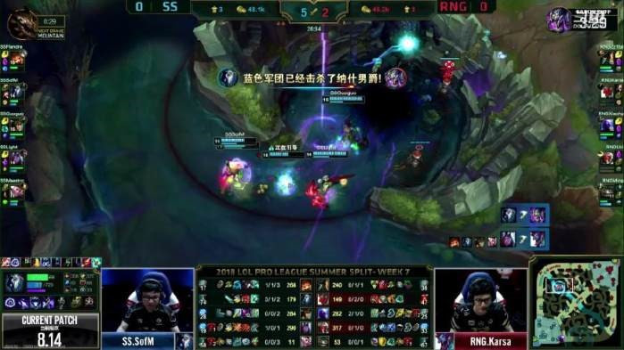 后来的一波先是在中路围剿死了UZI,随后SS直接选择rush大龙。Karsa想要rush大龙,但是被千珏的大招秀翻惨遭击杀。最终SS稳健的拿下大龙,可以说是确定了自己的优势。