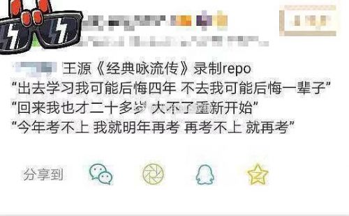 网易娱乐12月20日报道近日,王源参与综艺节目《经典咏流传》的录制,据参与录制的现场粉丝爆料,王源在现场表明自己出国念书的决心:“出去学习可能会后悔四年,但是不去会后悔一辈子,回来也才二十多岁,大不了重新开始”。