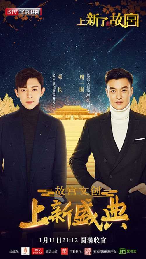 节目中,“故宫兄弟”邓伦、周一围将携黄龄、徐璐等助阵嘉宾,一同带观众领略在本季《上新了·故宫》中诞生的九件文创上新产品以及两大合作专享文创的绝美风采。此外,身为演员的“故宫兄弟”邓伦、周一围不仅将带来演唱、魔术等才艺大秀,还将继续与故宫文化专家探讨各大节目主题中未曾发掘完的精彩细节。