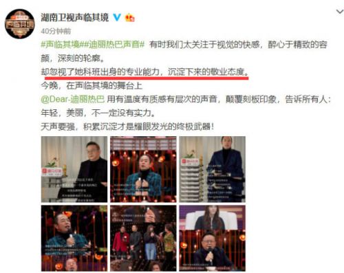 节目播出之后,节目组还特意发文:忽视了她科班出身的专业能力,沉淀下来的敬业态度。强势力挺迪丽热巴。