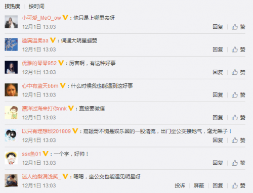 12月1日,有网友在微博分享偶遇明星的经验,表示自己一上公交车时,就看见一个面熟的男生,尤其穿着Canada Goose坐公交也不免会让人关注与好奇,最后仔细端详后确认是舒嘉颖。该网友更表示,舒嘉颖是从慈云寺上车至长虹桥北下车,当时车上乘客较少,所以很容易被认出。