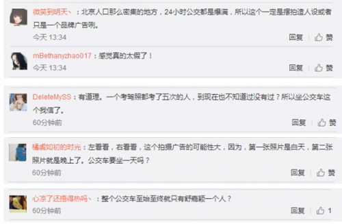 不过也有网友并不买账,表示感觉太假了,整个公交车上至始至终就只有他一个人,而且这是在人口密集的北京。除此之外,网友还表示,第一张照片是白天,第二张就变成了晚上,难道公交车坐了一整天吗? 并调侃他这是从北京坐公交车去石家庄。还认为舒嘉颖如果不是摆拍营造人设,就很可能是在为某品牌拍摄广告。