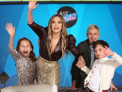47岁的辣妈詹妮弗·洛佩兹(Jennifer Lopez)带着她与马克·安东尼(Marc Anthony)所生的龙凤胎马克斯(Max)与艾姆(Emme)作客4月24日的《艾伦秀》(The Ellen DeGeneres Show),宣传自己的新节目《舞世界》(World of Dance)。